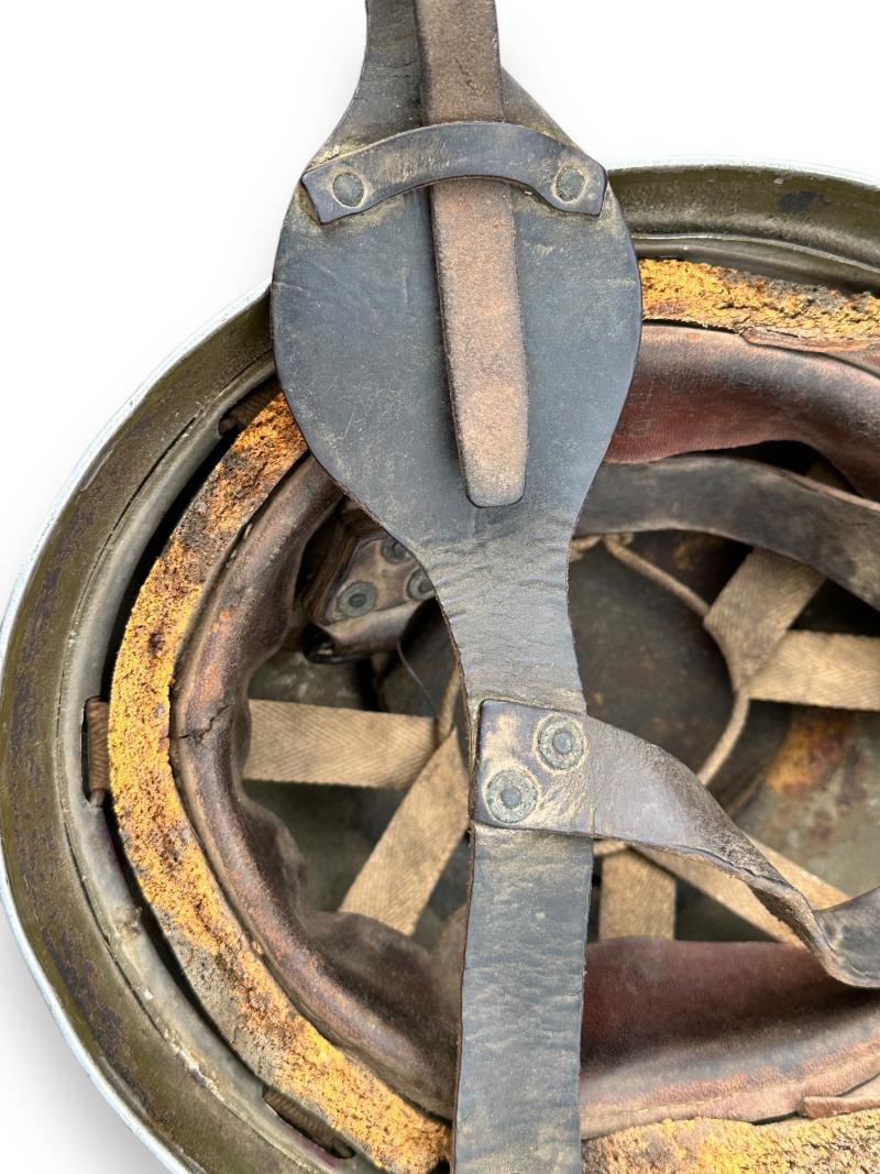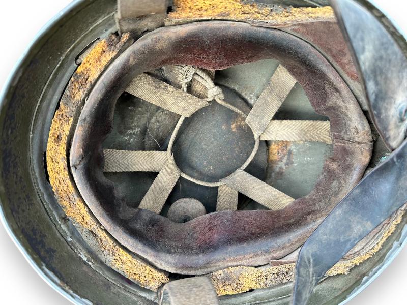 Very nice helmet with supple leather chin straps and sweatband.