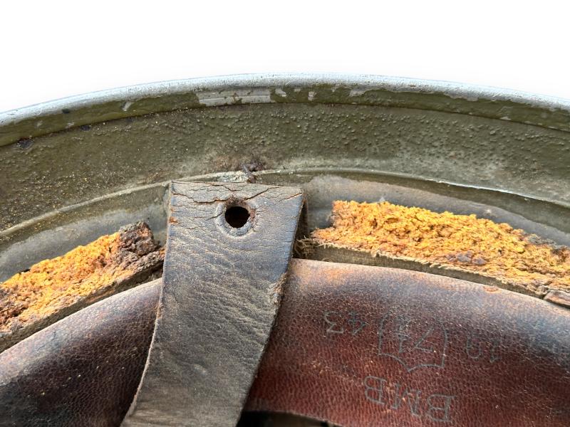 Clearly untouched and in very nice condition a British Airborne Paratrooper Helmet which is nicely maker marked 'bmb' and dated '1943' as well the size stamp is clearly visible which is a perfect size.