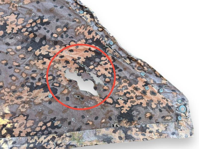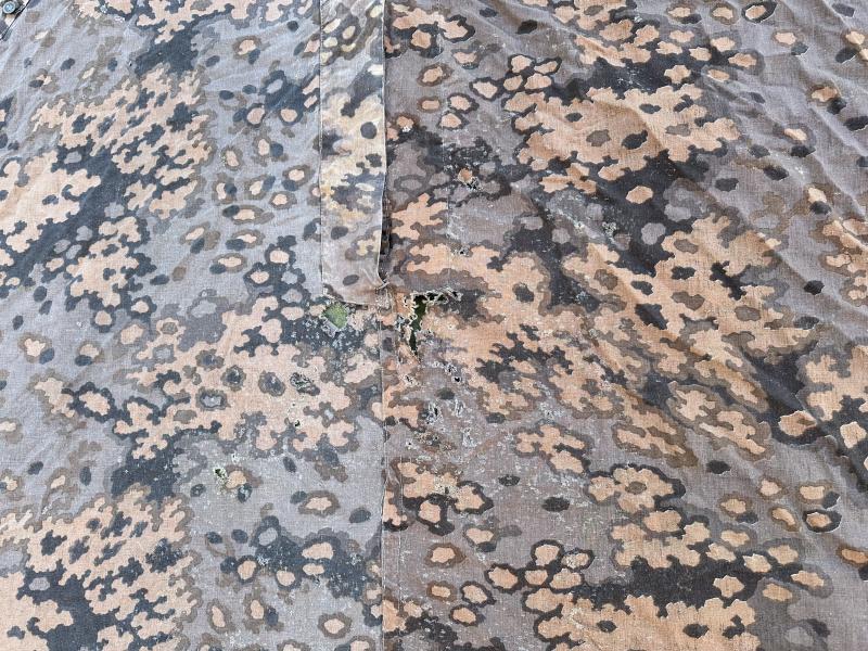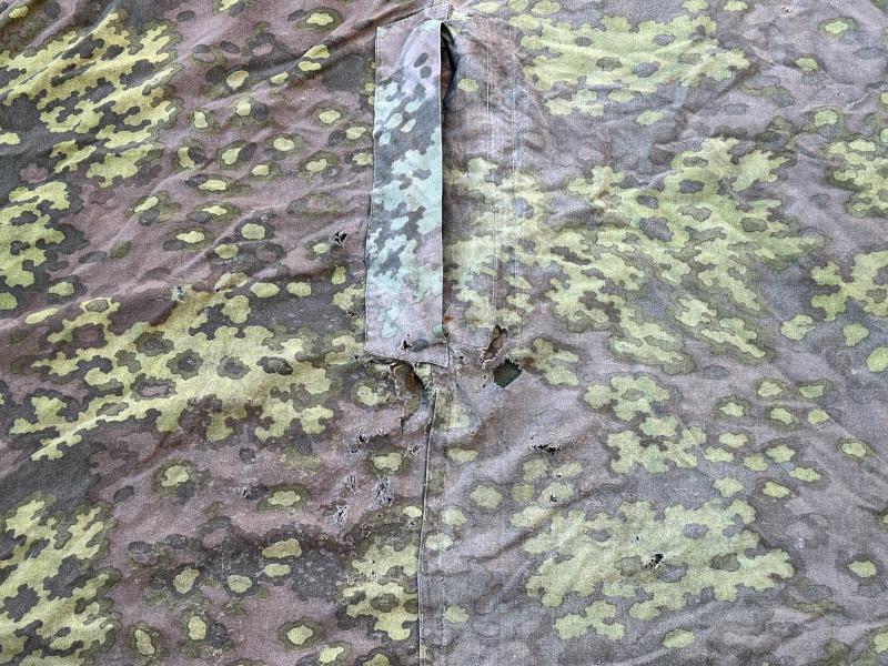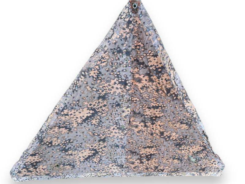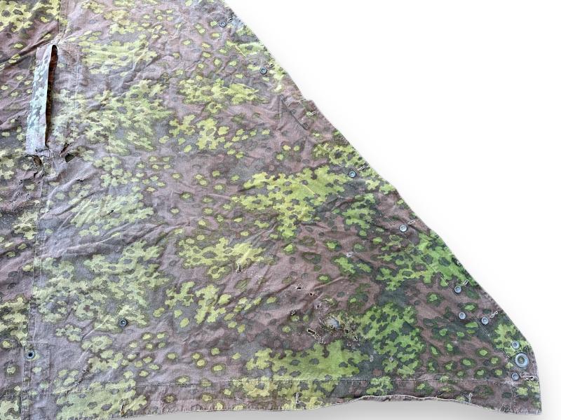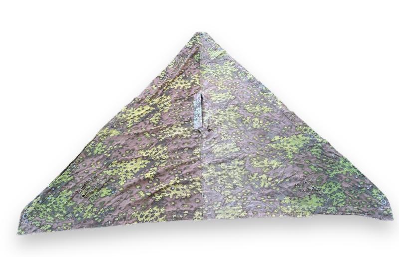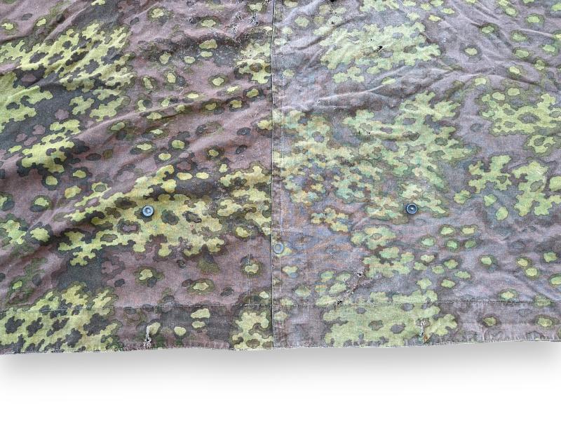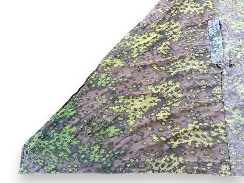 In used condition a Waffen-SS Shelter Quarter/Poncho, roller ptrinted reversible spring/autumn oak-leaf camouflage. The shelter quarter/poncho has some damages which are shown on the pictures.