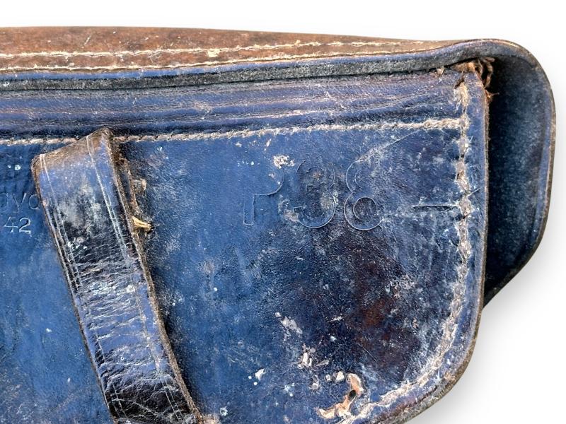 Very nice Leather P38 Holster which is nicely dated 1942 and factory code marked 'gyo' (Hans Dinkelmaeyer, Lederwarenfabrik, Nuernberg).