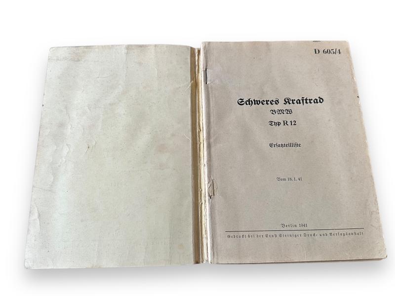 This original BMW R12 Spare Parts List is a must-have for collectors and restorers of WWII motorcycles. Dated 1941, it provides detailed information on the parts of the iconic BMW R12. This document is in excellent condition, with all pages.