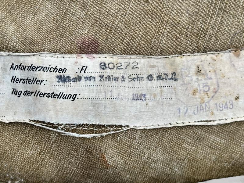 Both the harness and bag are clearly marked and dated 1943, confirming their authenticity as WWII German paratrooper equipment. These were used by Fallschirmjäger troops during airborne operations, including jumps from the JU52 or He111 aircraft.