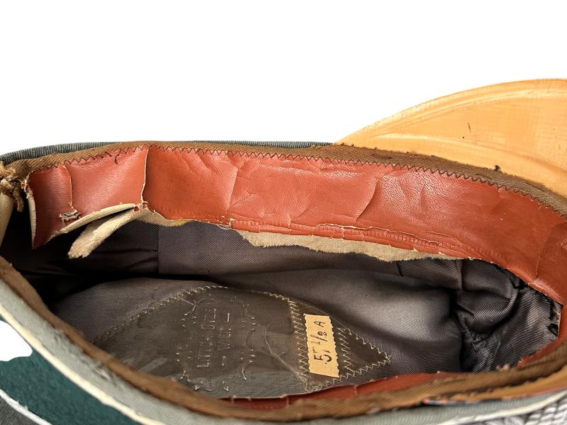 This Wehrmacht/HEER Infantry Officer's Visor Cap is in worn but still excellent condition, making it perfect for display. It features a beautiful marking of "Litto-Mütze Wien" and includes a size stamp, confirming its authenticity. The cap retains its original shape and details.