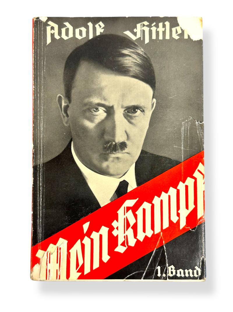 The original Mein Kampf volume 1 & 2 comes in it's original cardboard cover. This example will be sold to collectors and is intended for historical and research purposes only.