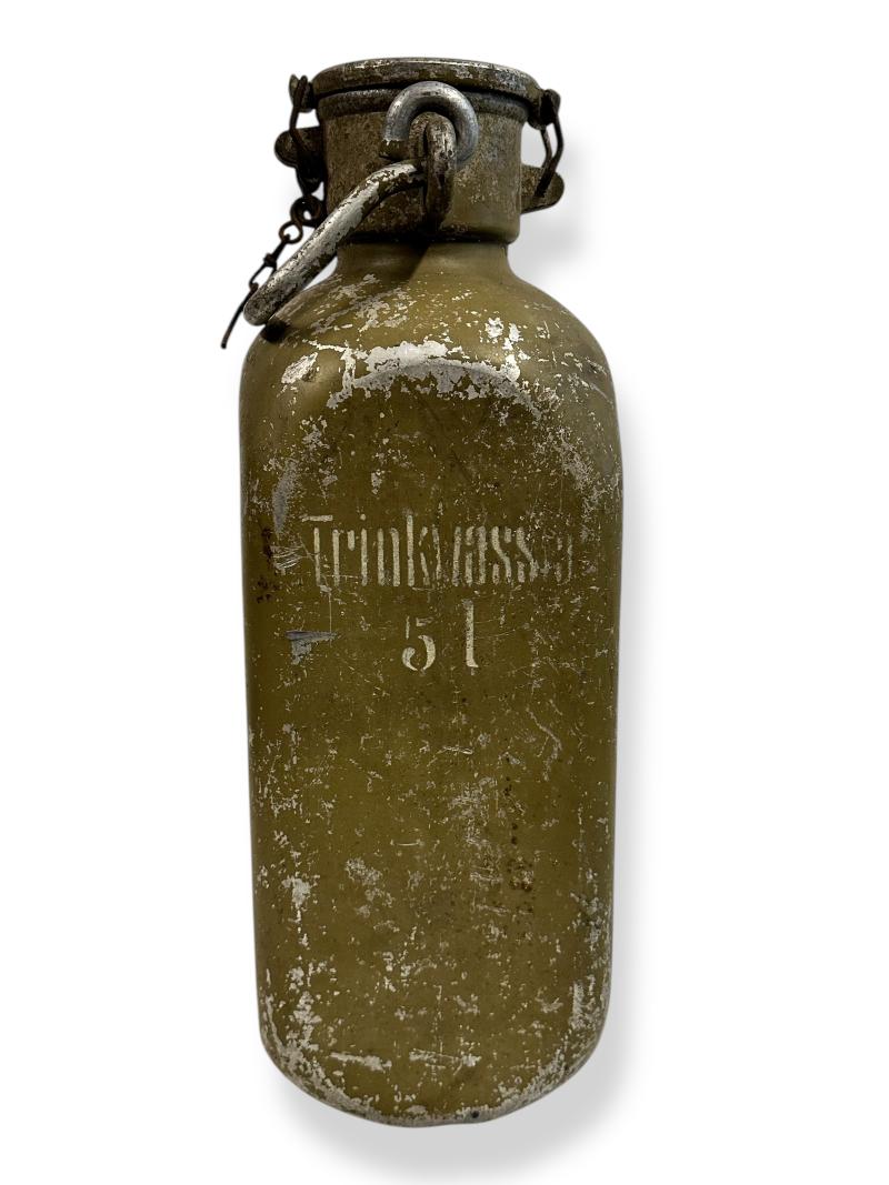 In very nice condition this DAK 5 Liter water can '5 Liter trinkswasser' made of aluminium. Its nicely factory marked on the bottom and in 80% original color.
