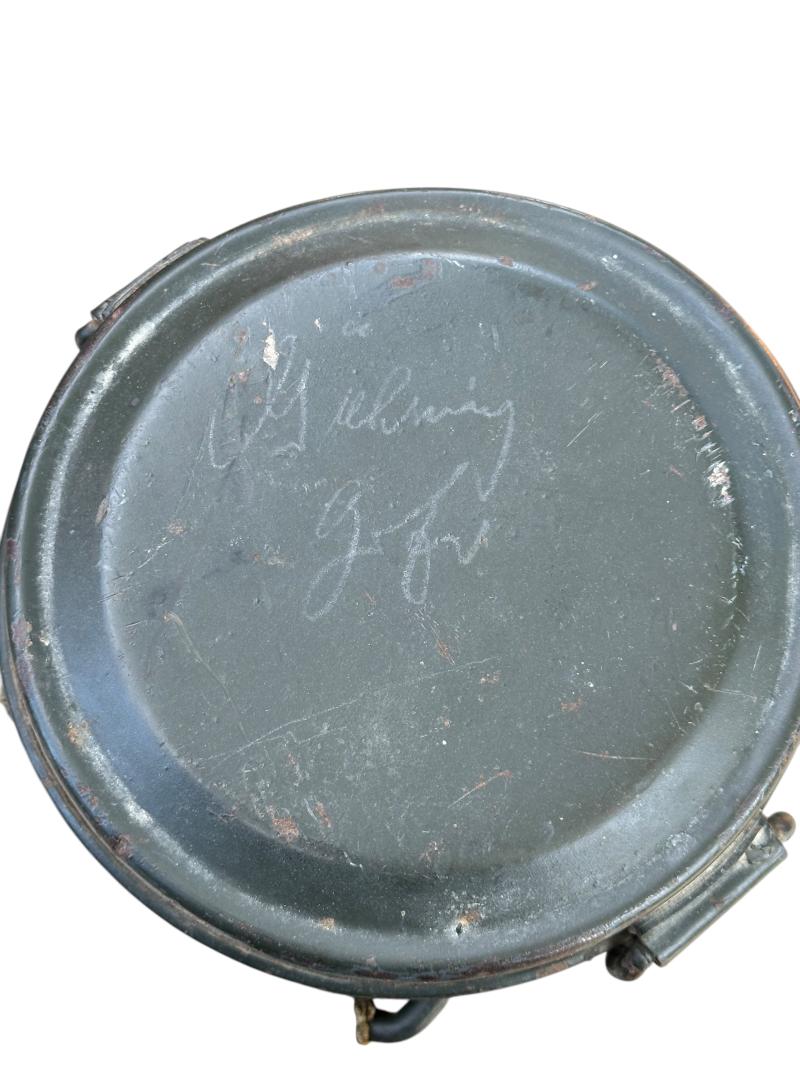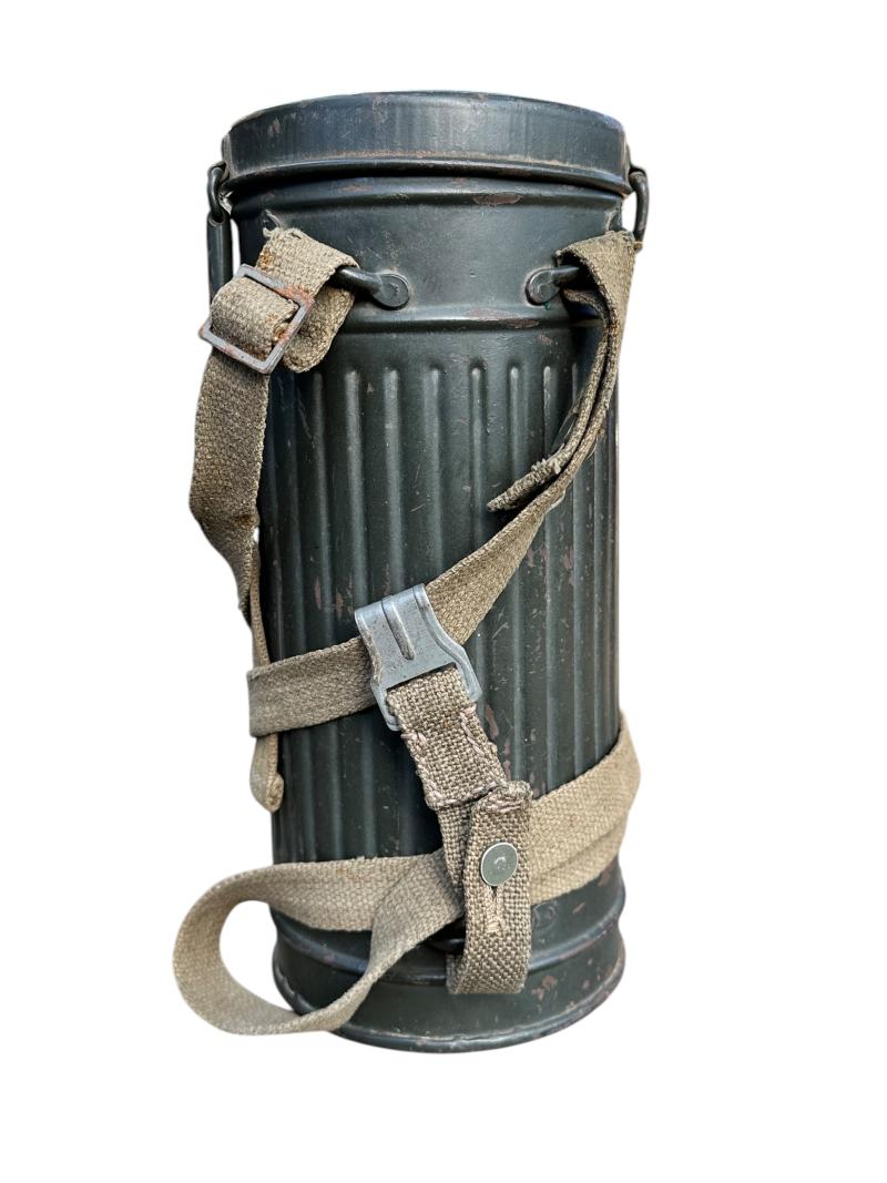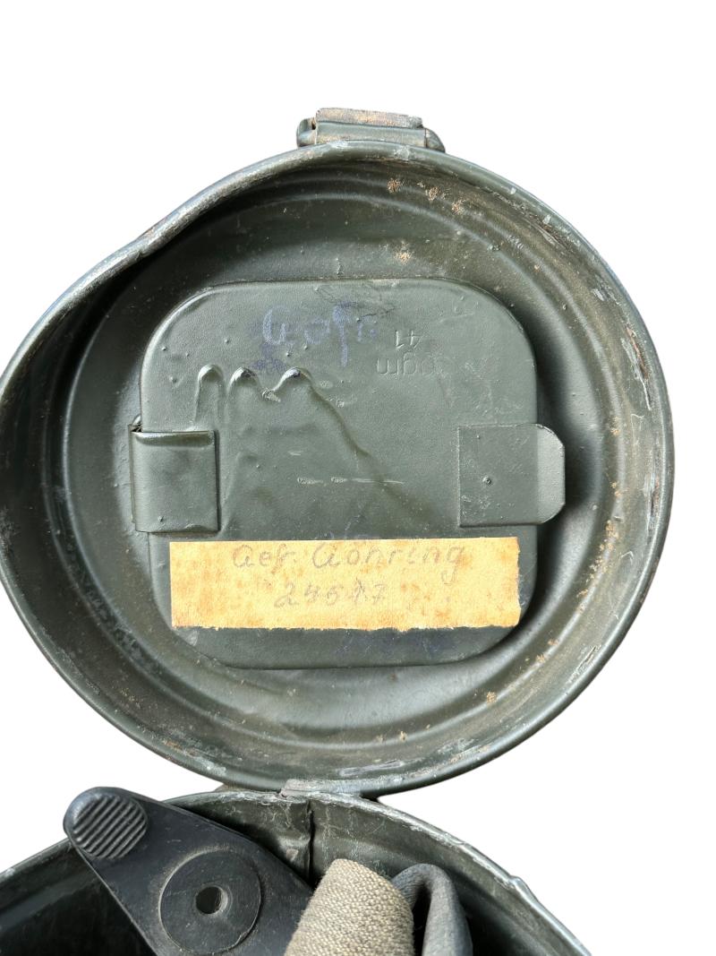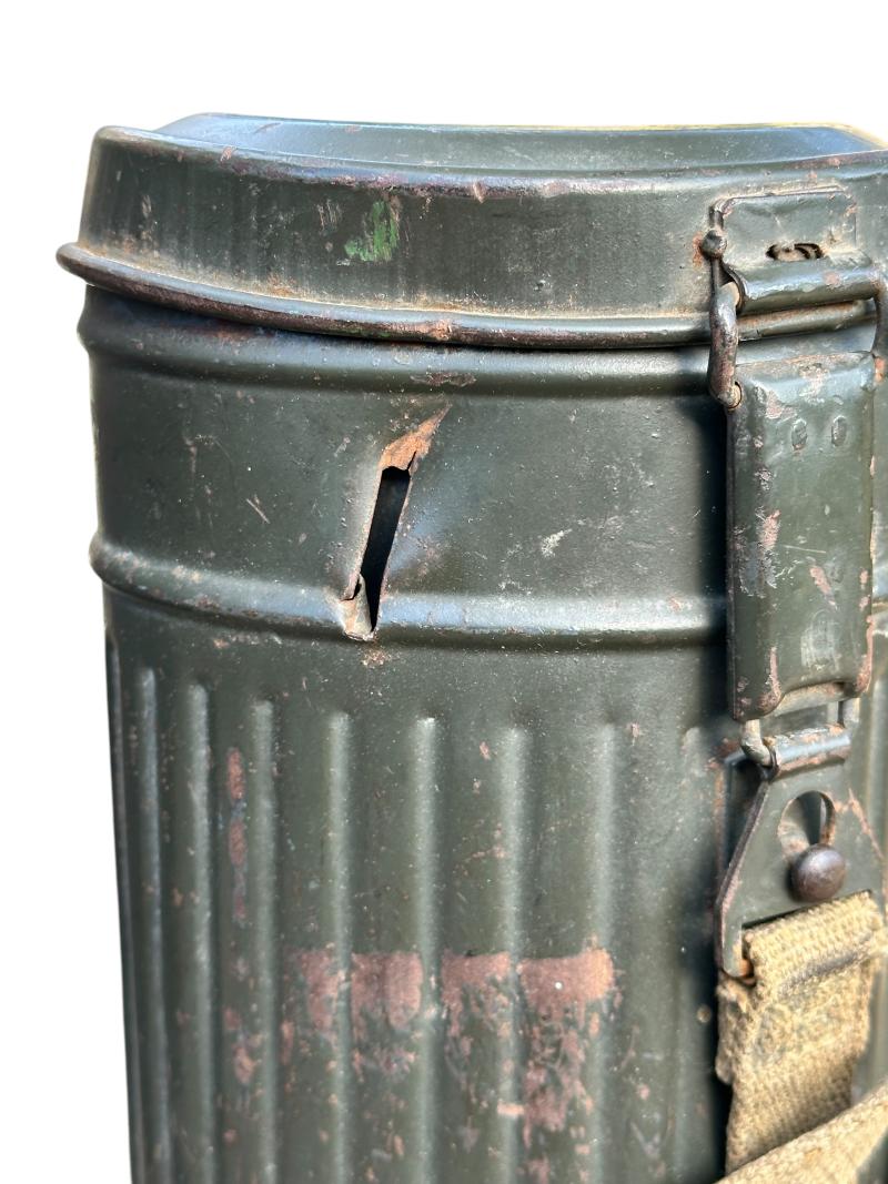 Very attractive Waffen-SS Gasmask Set with Shrapnel Damage.