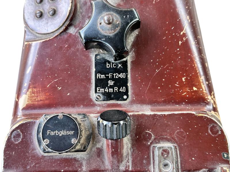 In good condition Flak Binoculars Rm.F 12x60 (Richtungsweiser-Fernrohr) which comes with the original plate with the factory code 'BLC'.