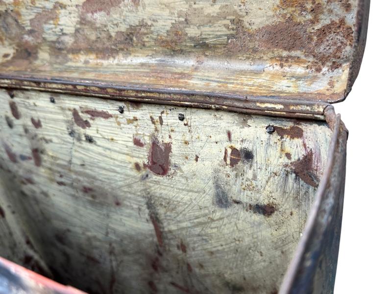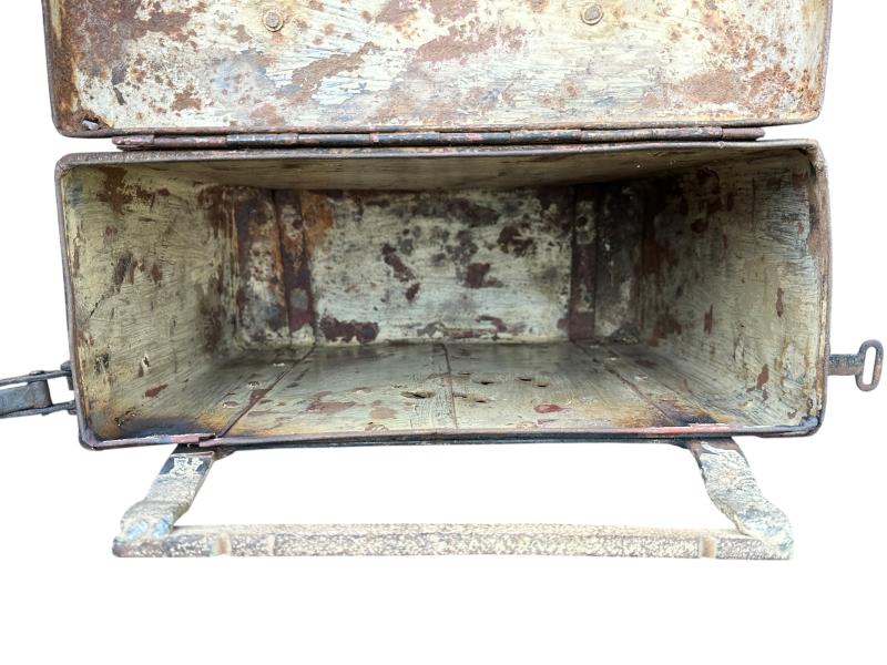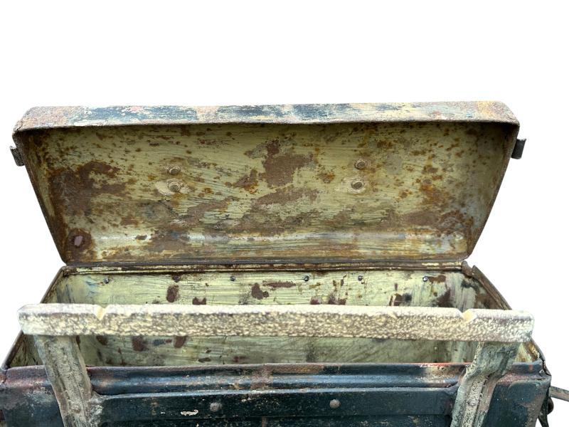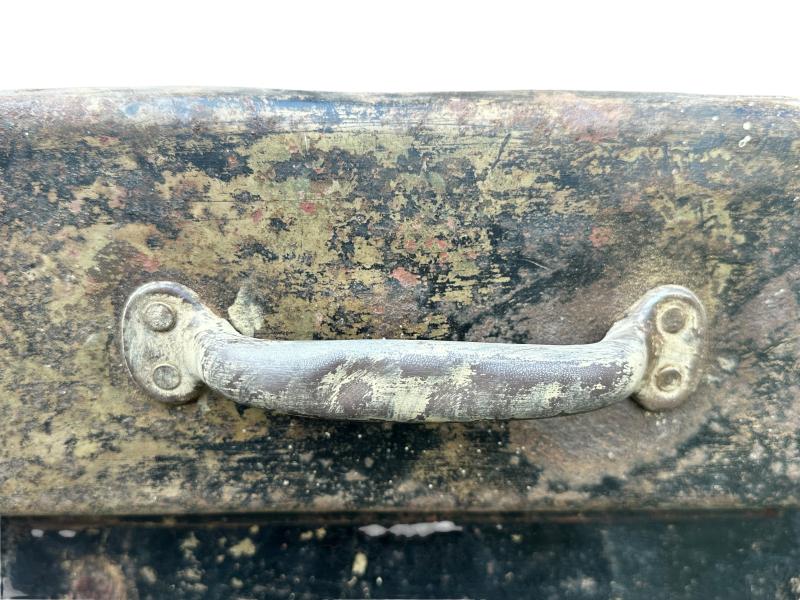 Restored motorcycle box "Packtasche'', suitable for BMW or Zündapp. Underneath the black paint, the original camouflage is still visible.