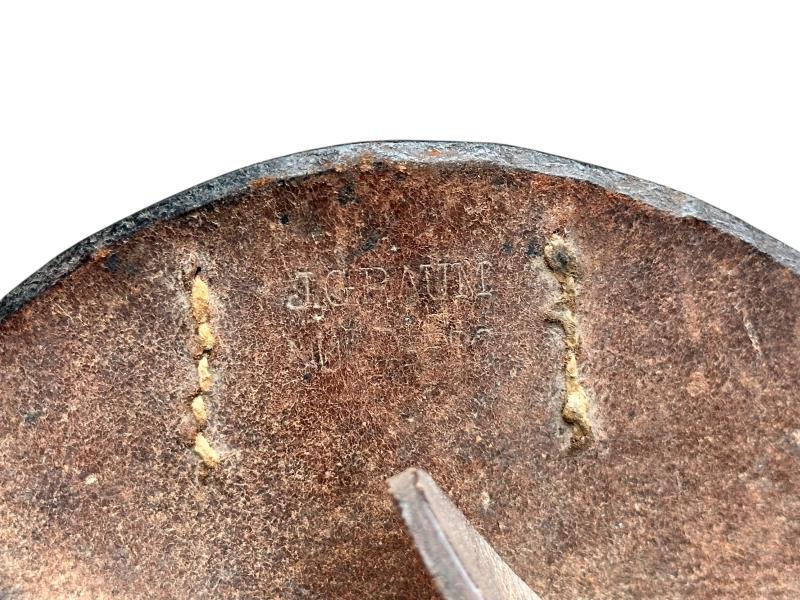 Offered in untouched, “as found” condition with a clear maker’s mark. The leather is solid and shows no signs of rehydration.