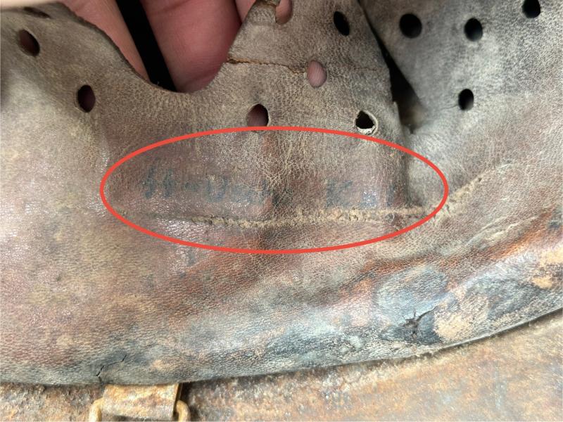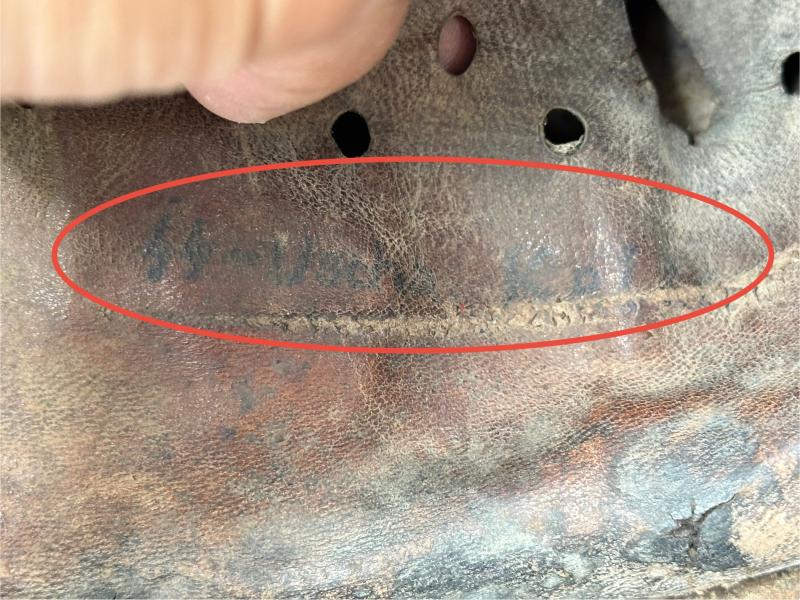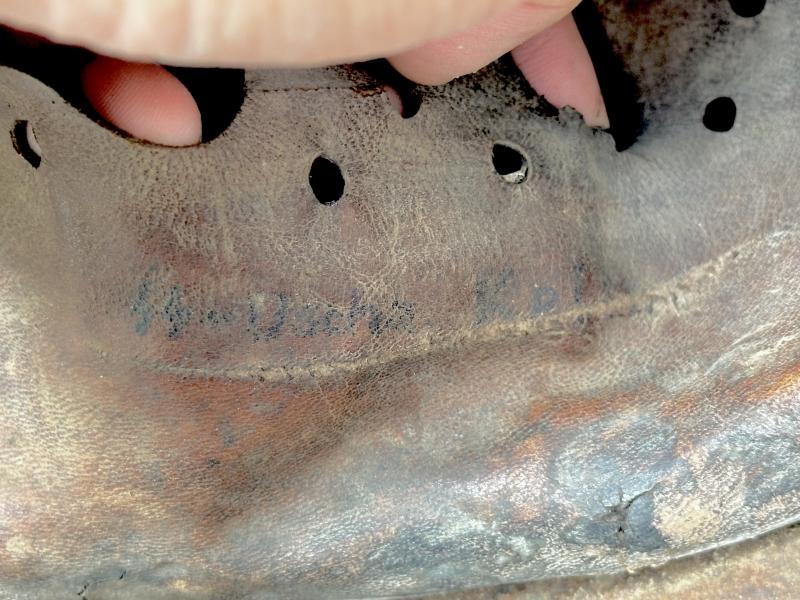 The leather liner is in used condition, also the liner is clearly named in ink to an ''SS Uscha. K...''.