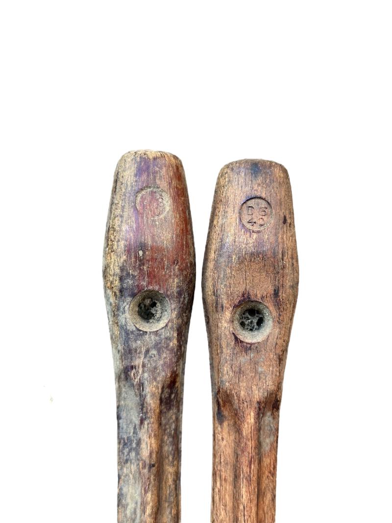 In used condition 6x german bakelite tent pegs, all dated and marked.