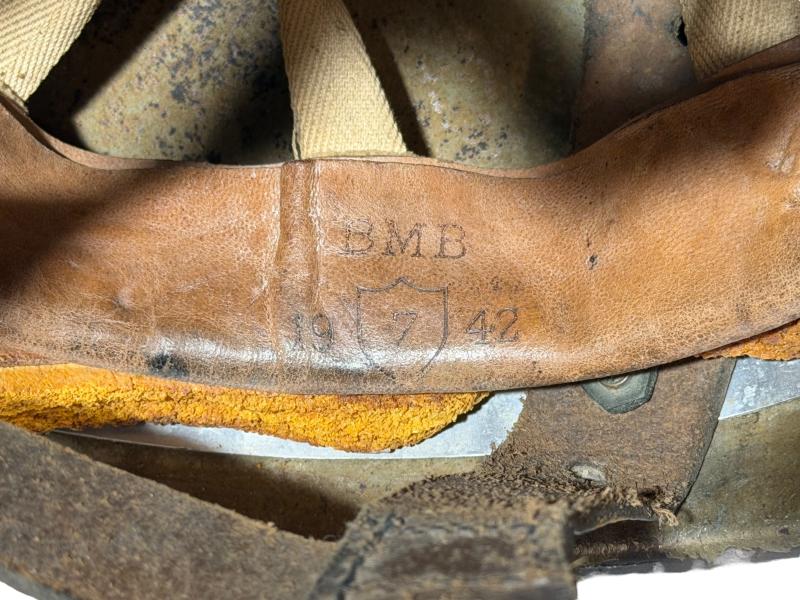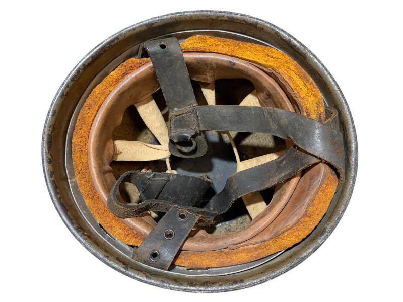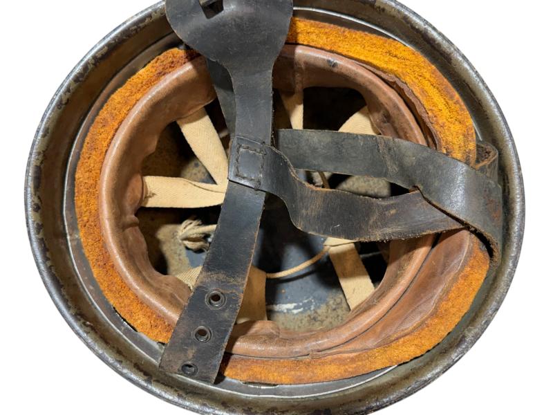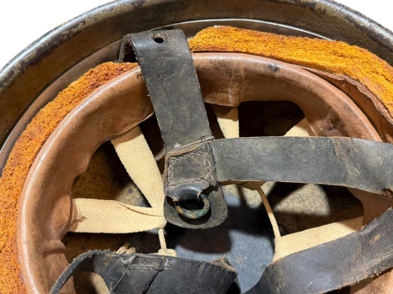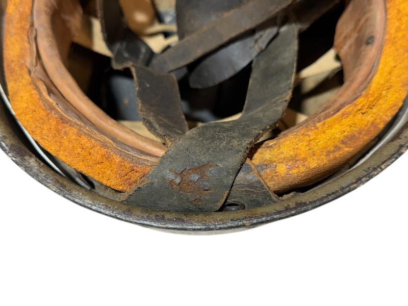 More then 95% of the original factory paint is still present and comes with the original leather chin straps and liner which is nicely maker marked, as well the date is clearly visible.