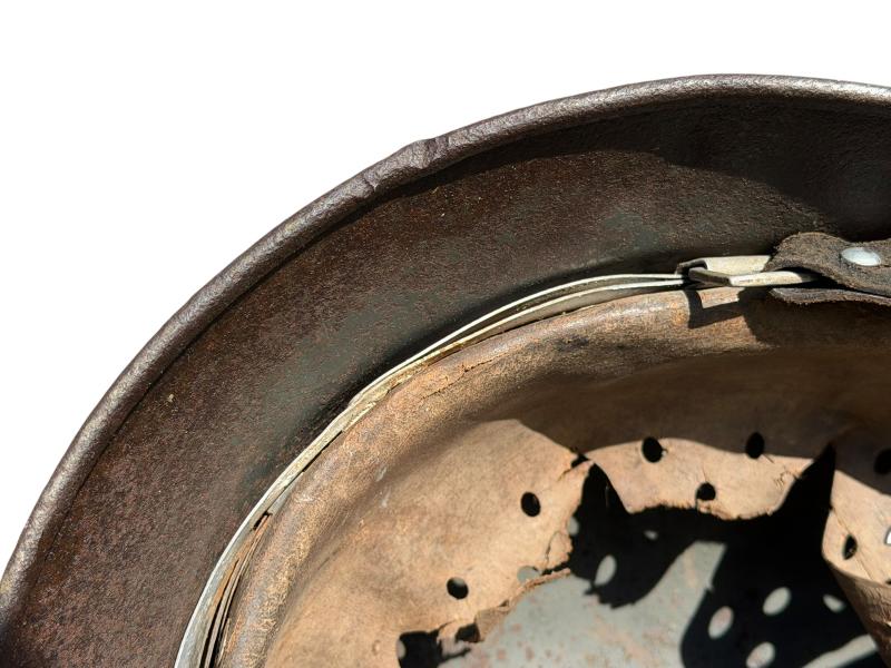 It comes complete with its original liner. According to the previous owner, the helmet was found in Avranches.