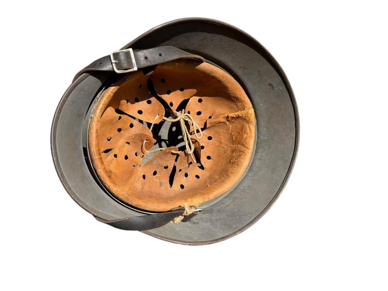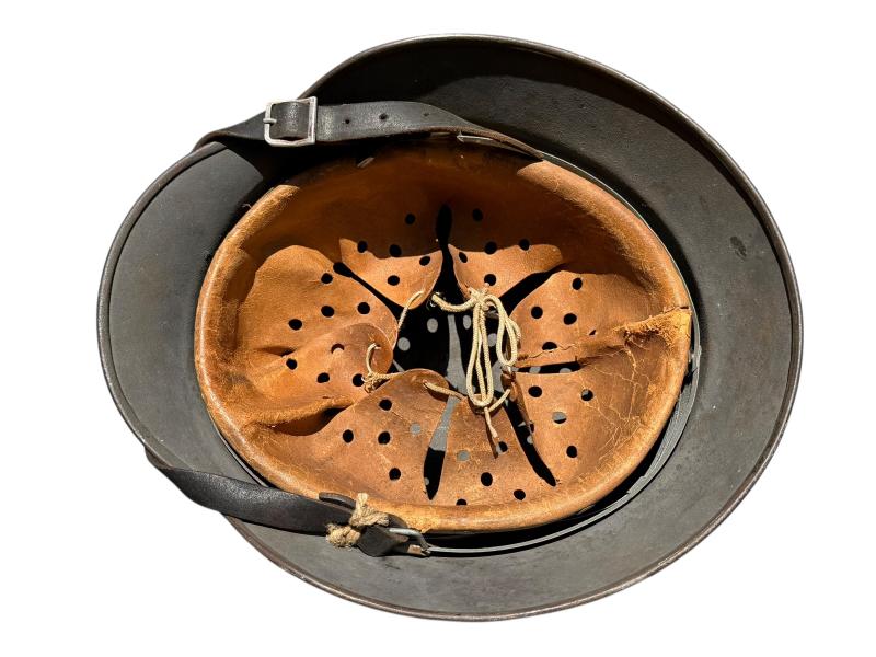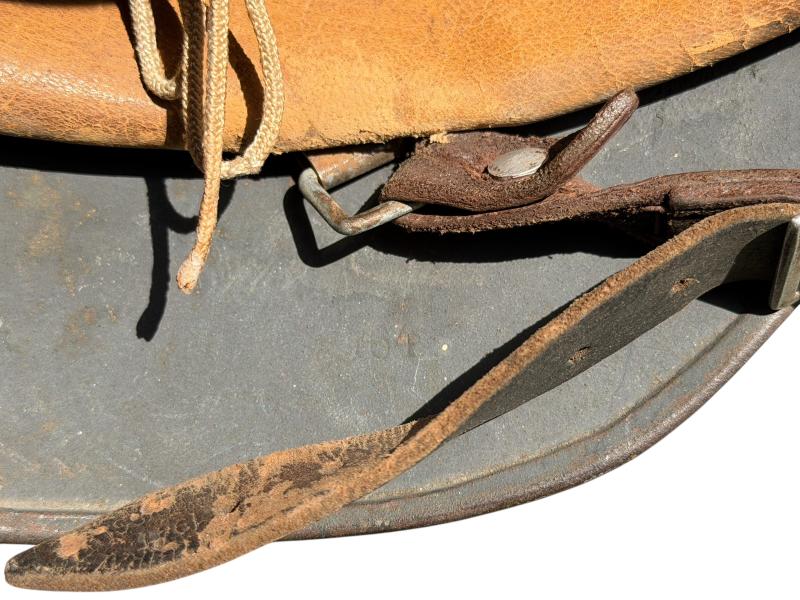 The helmet comes with its original leather liner and chin strap.