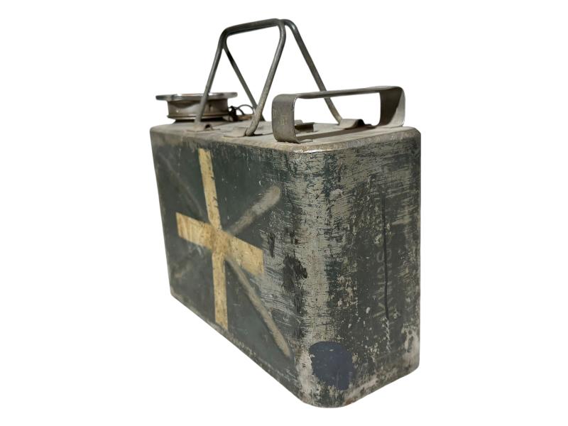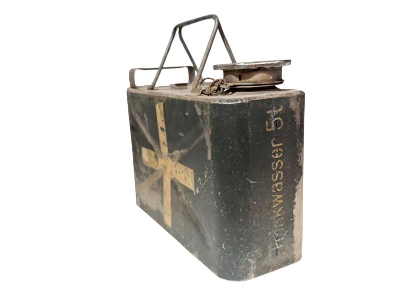 An original German WWII water canister marked “Trinkwasser 5L”. This example is well preserved and retains more than 80% of its original paint.